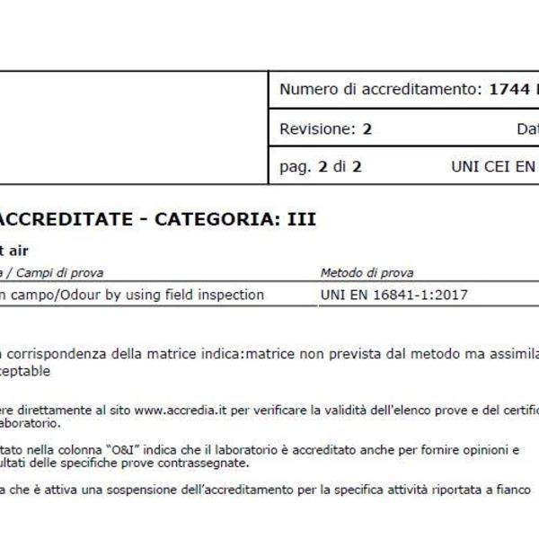 LOD è il primo Laboratorio Olfattometrico in Italia ad essere accreditato ACCREDIA per ben tre prove che sono: Odour Field Inspection, Rinoanalisi e Olfattometria Dinamica.